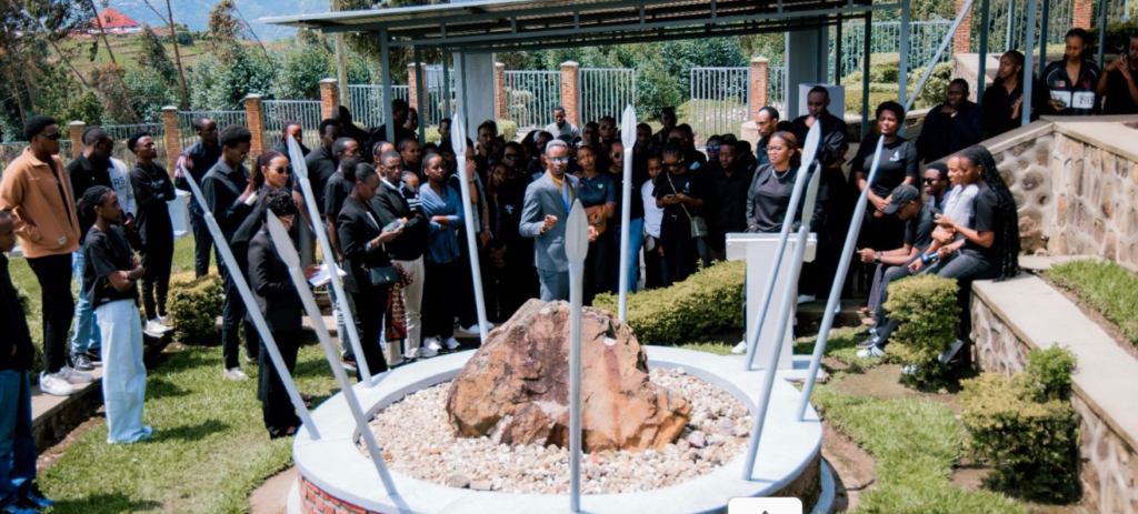 Students of the Adventist University of Central Africa (AUCA) who are part of the youth organization affiliated with the RPF Inkotanyi visited the 1994 Bisesero Genocide Memorial located in the Western Province, Karongi District, Tumba Sector, Gitabura Cell, Kibingo Village. They were warmly welcomed and received detailed information about the history of Bisesero Hill during the 1994 Genocide against the Tutsi. They were informed that the memorial was inaugurated on 7/4/1997, renovated and reopened on 27/6/2014, and inscribed on the UNESCO World Heritage List on 20/09/2023.