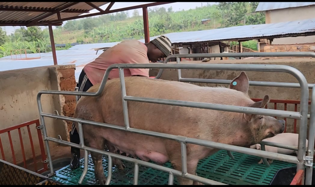 Currently, about 65% of pig farmers in Rwanda use artificial insemination techniques. This technology allows farmers to access high-quality pig breeds that grow faster and produce more piglets.